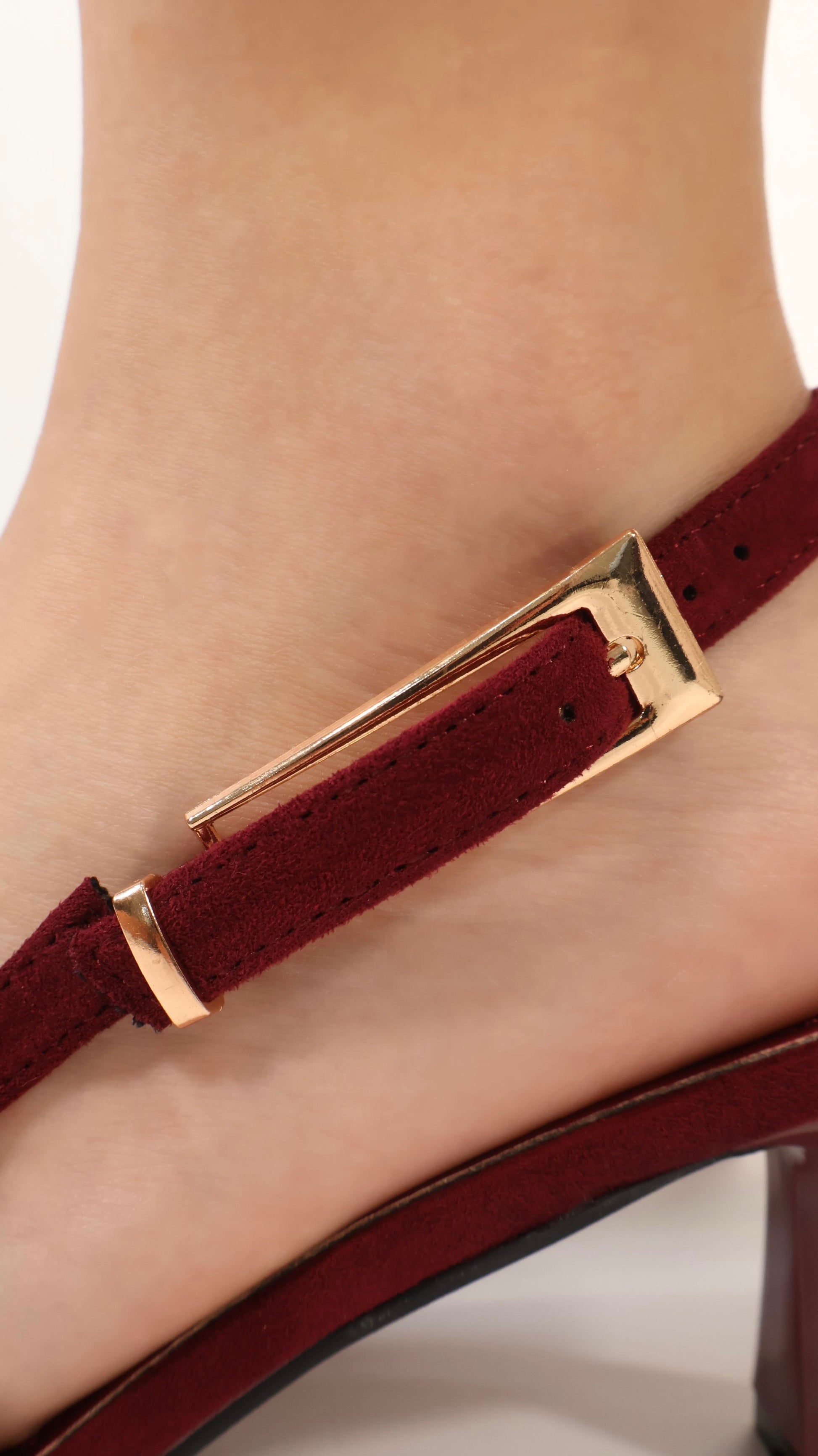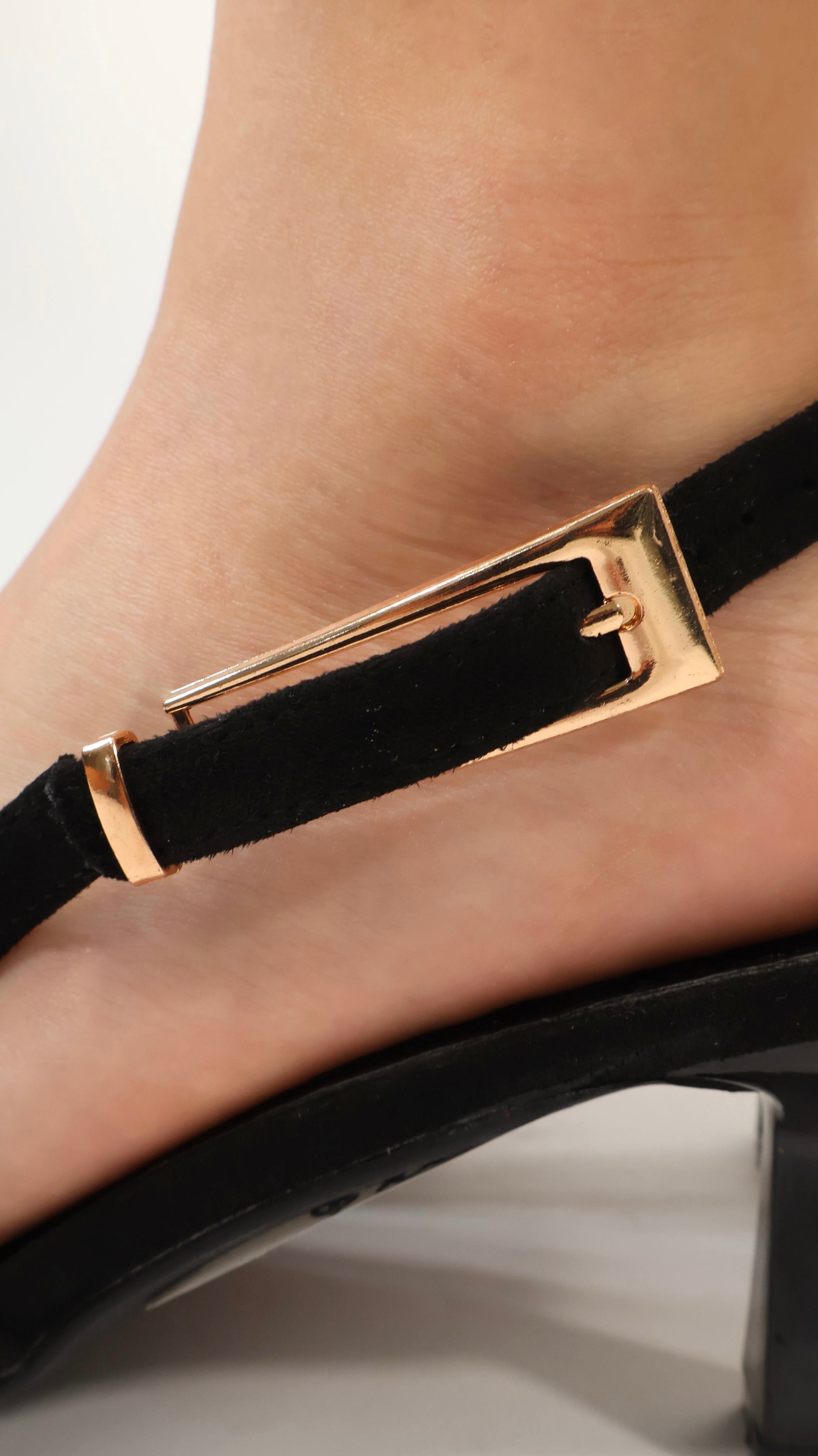 ZAPATILLA PUNTA PICUDA CON MAXIHEBILLA EN COLOR DORADO QUE VA EN LA PARTE LATERAL DEL DISEO, TACON DELGADO DE 5CM DE ALTO, MATERIAL DURAZNO Y EXACTO A LA TALLA