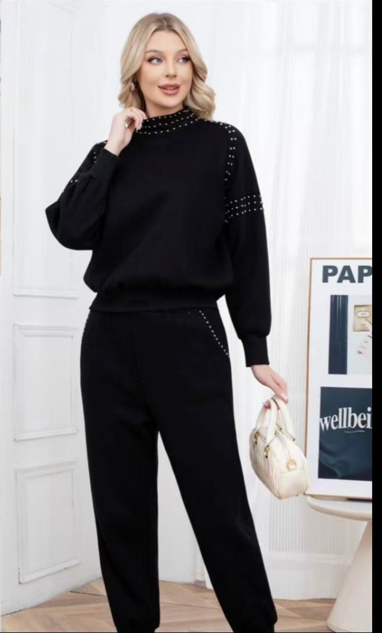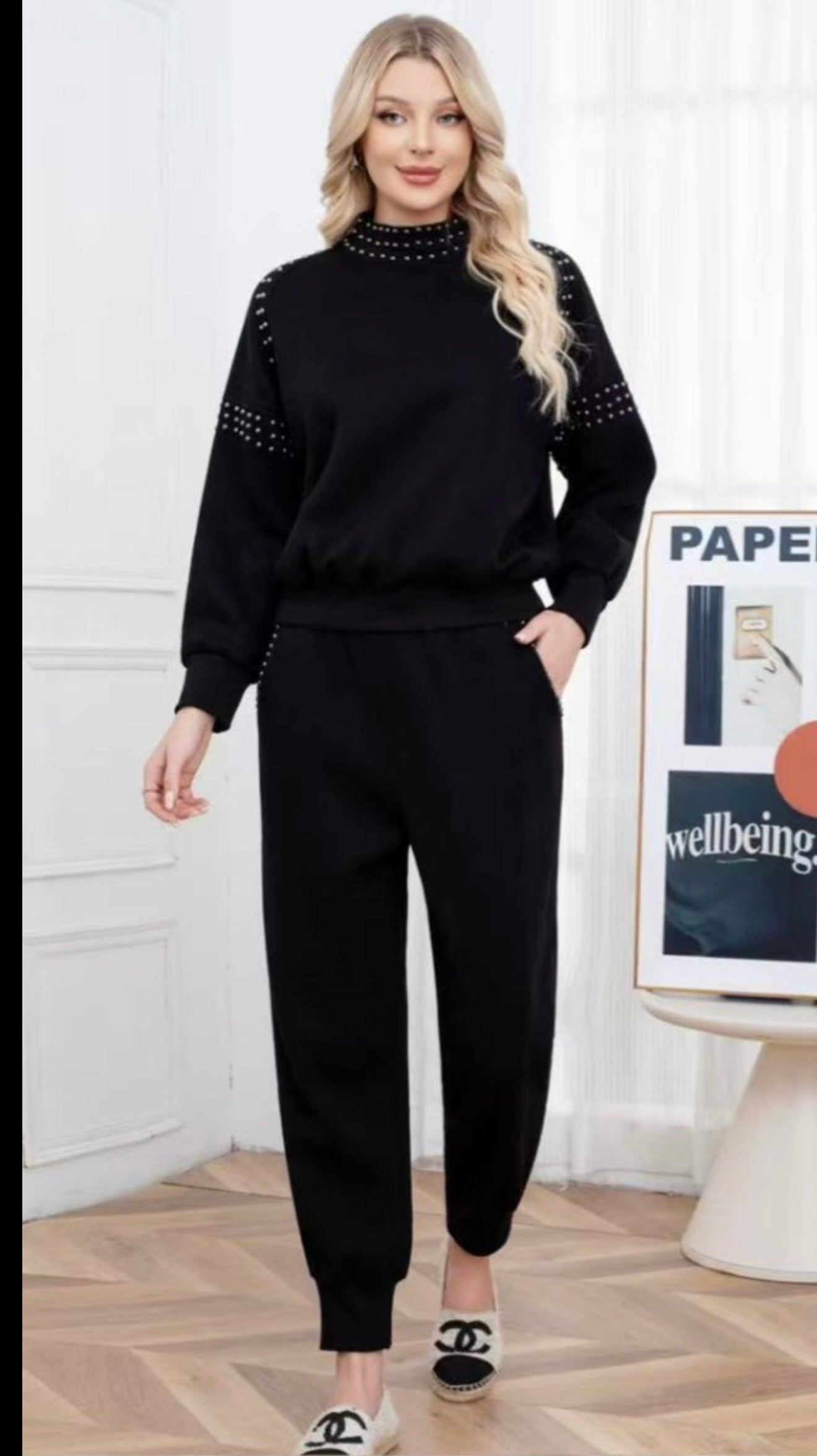 PANTS DE 2 PIEZAS, CORTE BASICO, CON DETALLES DE ESTOPEROL EN CUELLO, BRAZOS Y BOLSA LATERAL