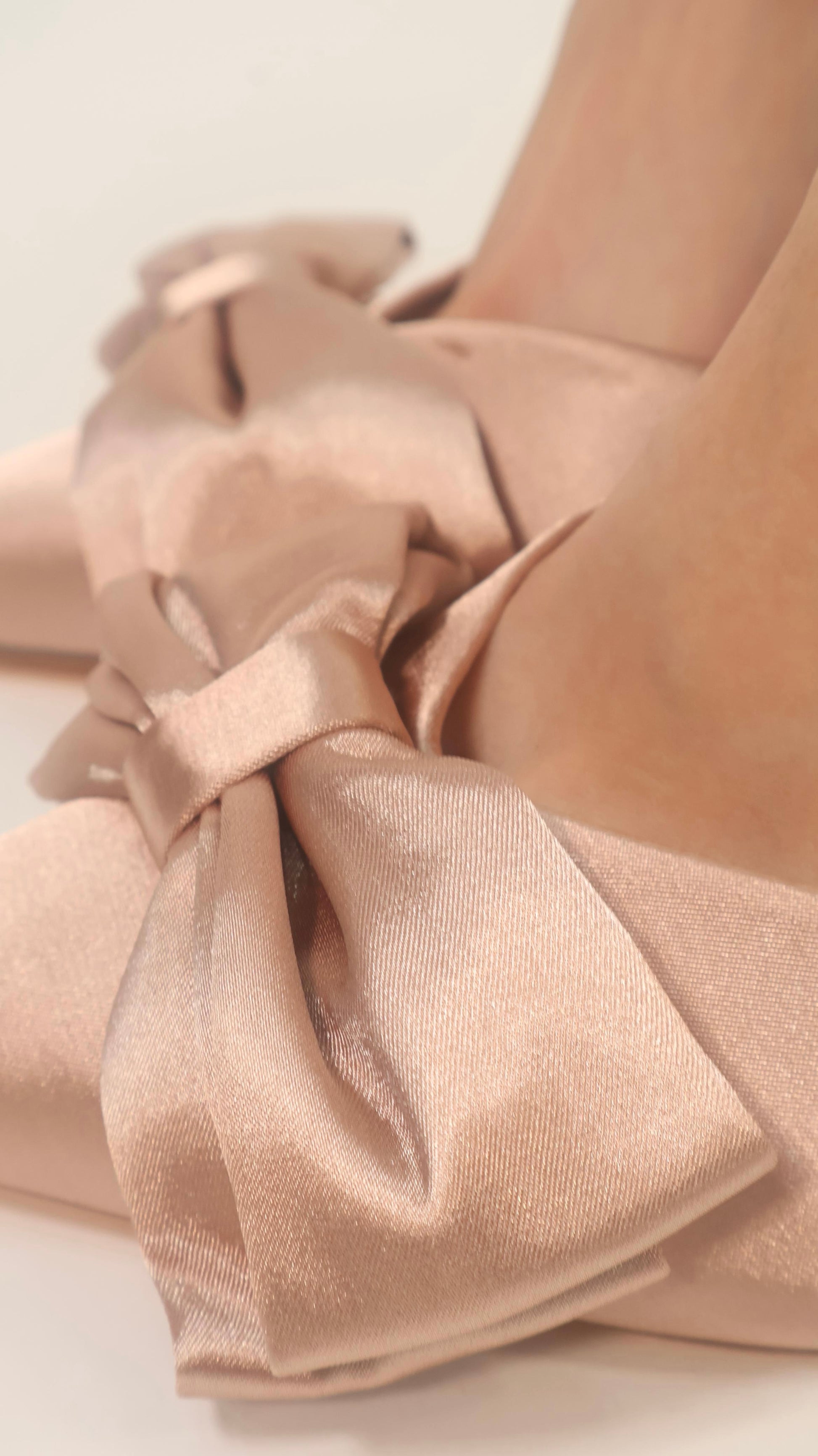 ZAPATILLA PICUDA CON MOÑO AL FRENTE , STRAP AHUSTABLE DELGADO AL TOBILLO, TACÓN DE 10 CM DE ALTO APROXIMADAMENTE. EXACTO A LA TALLA