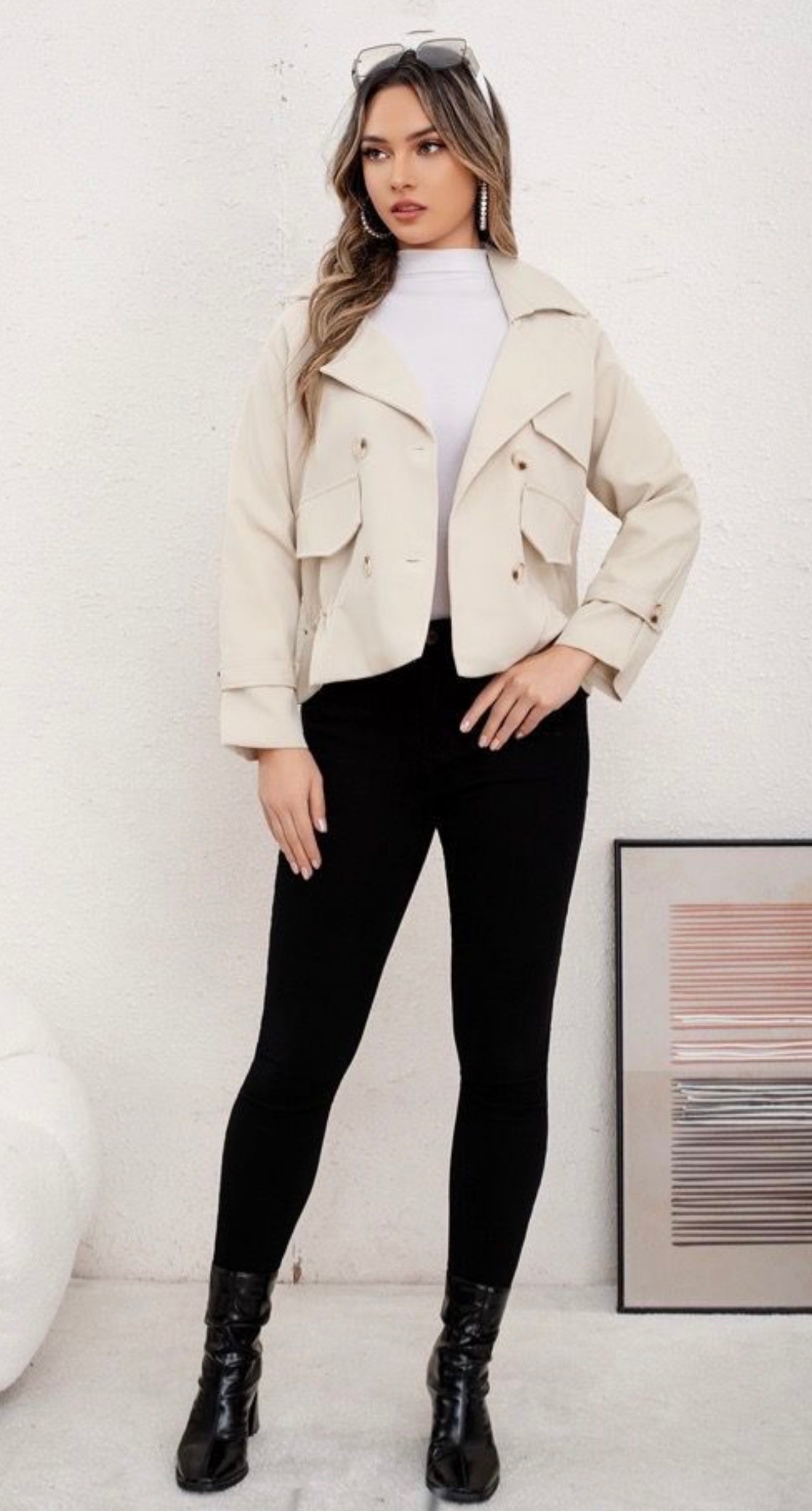 CHAMARRA LIGERA CON BOLSAS TIPO CARGO Y BOTON DOBLE