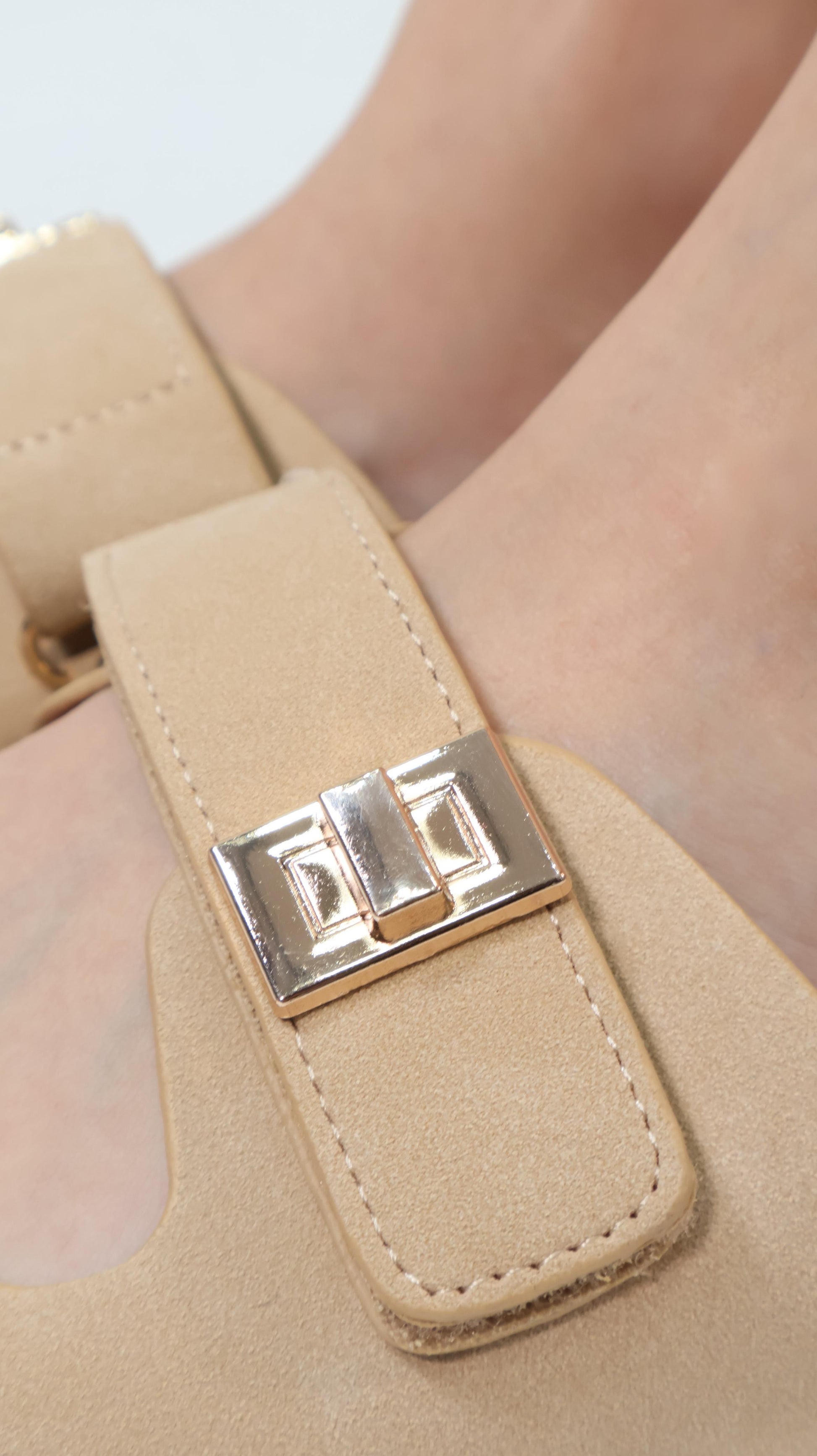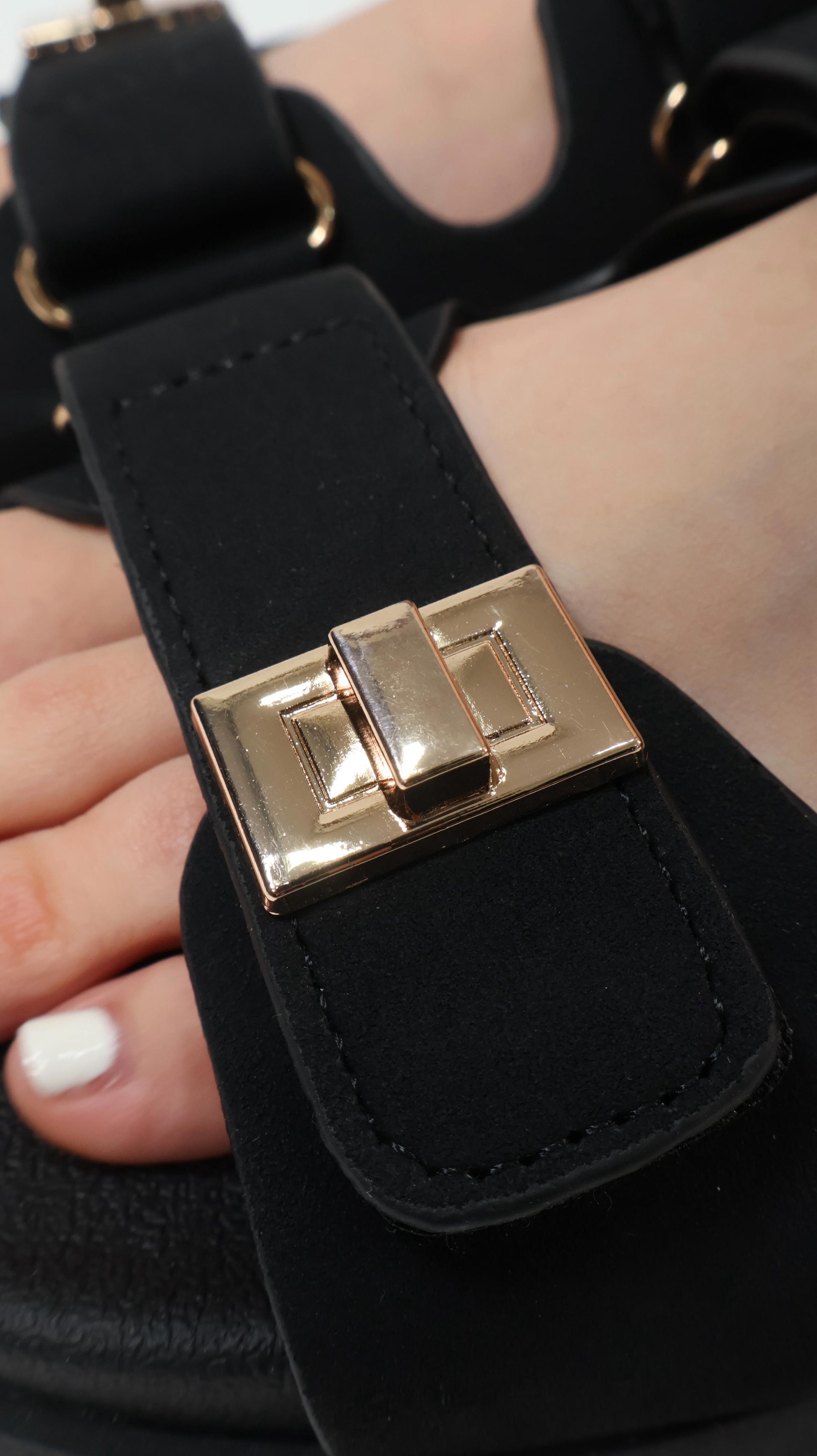 SANDALIA CHUNCKY CON 2 STRAPS GRUESOS Y DETALLES DE HERRAJES EN COLOR DORADO, EXACTO A LA TALLA MATERIAL NUBUCK