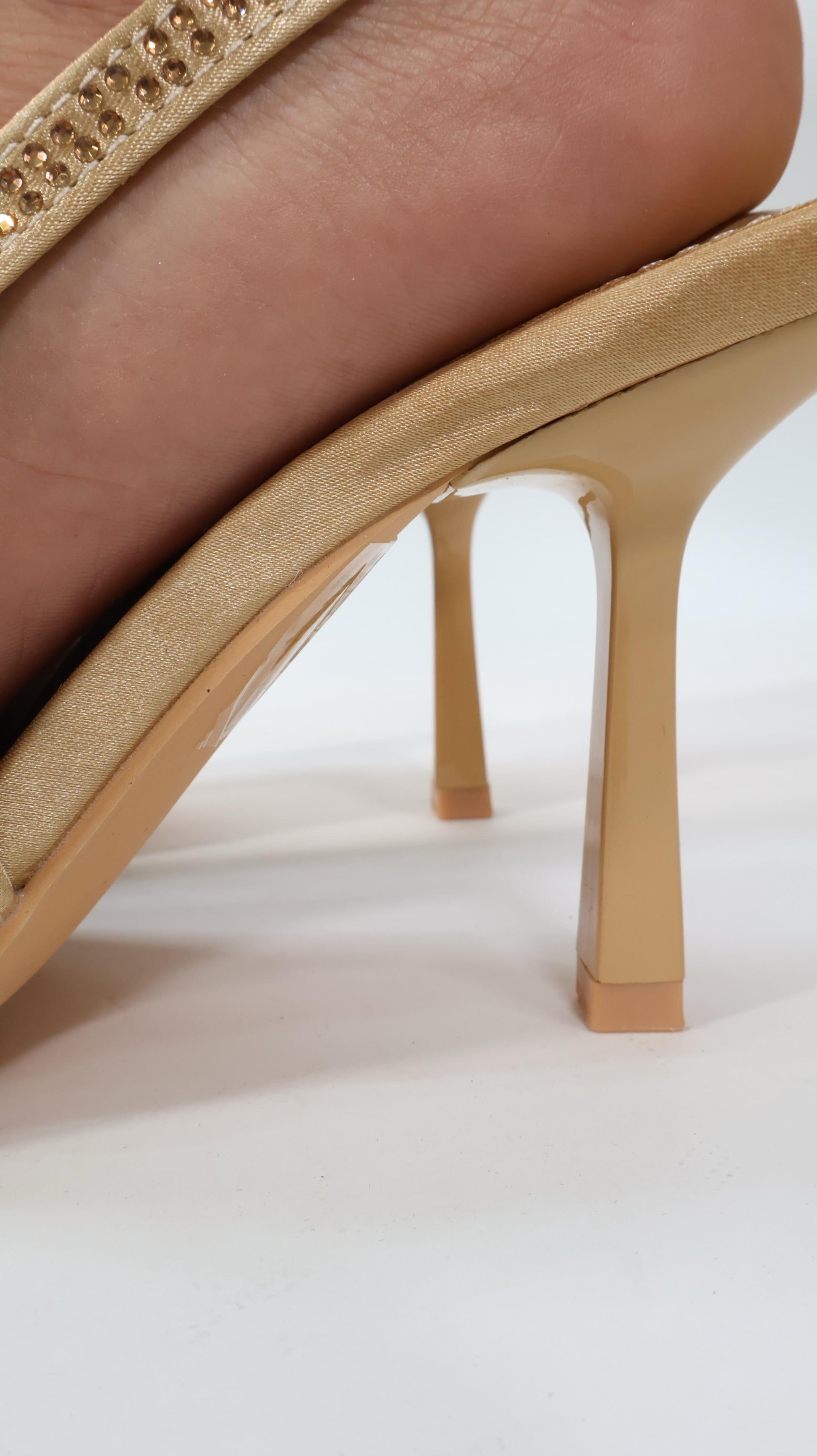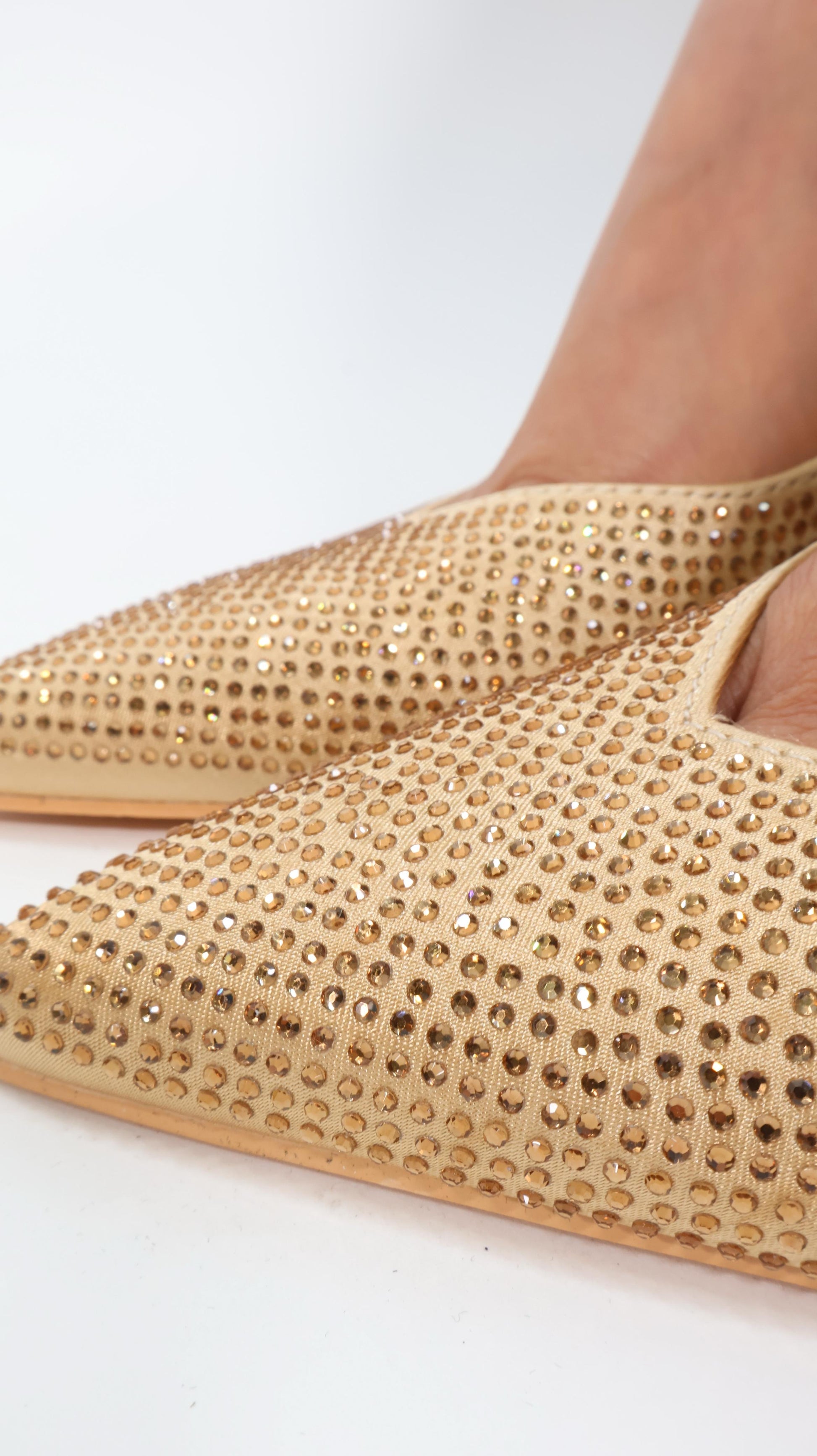 ZAPATILLA REPLETA DE PIEDRAS, PUNTA PICUDA, TACÓN DE 9 CM DE ALTO, EXACTO A LA TALLA