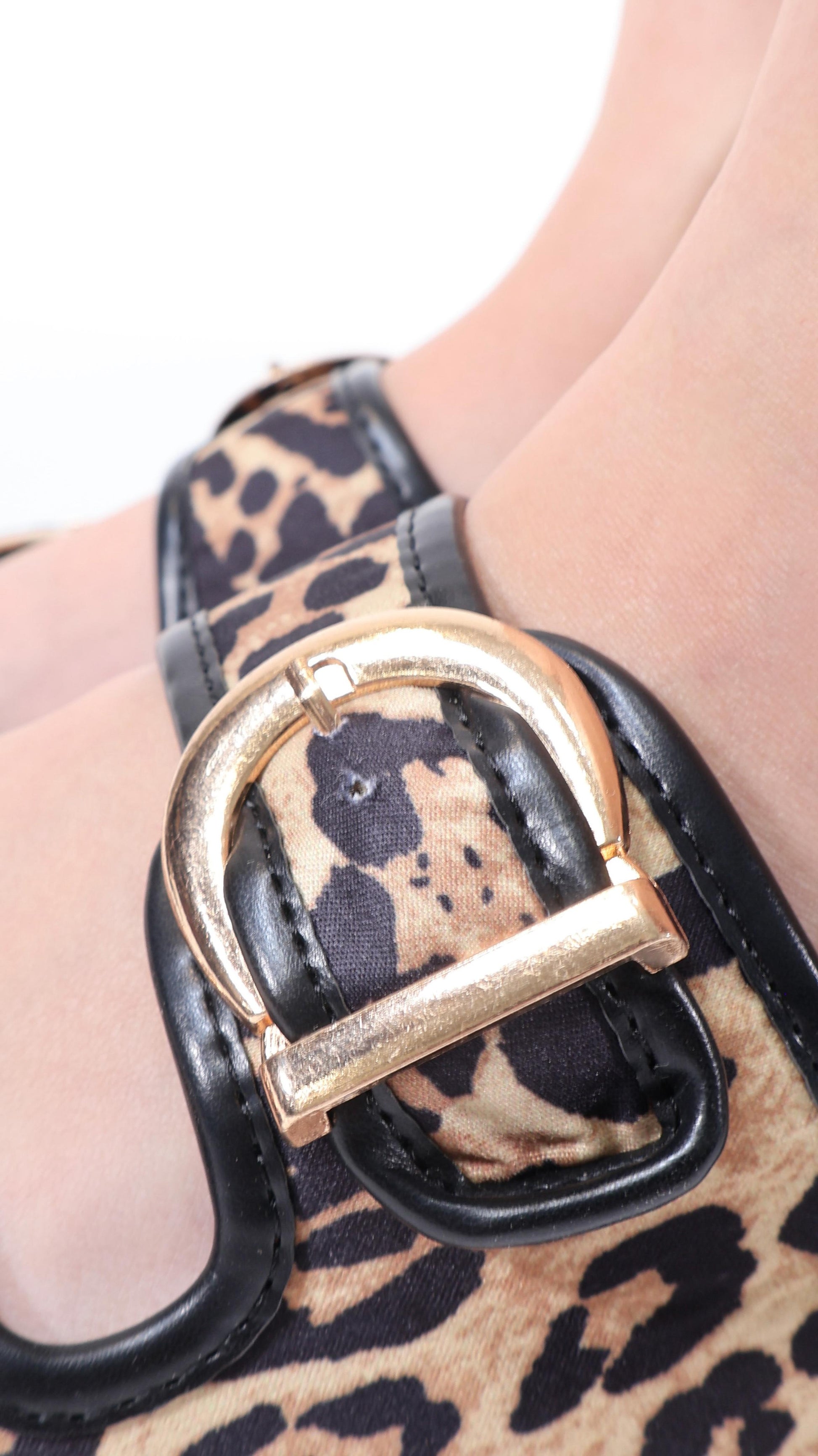 SANDALIA CHUNKY CON PRINT ANIMAL, 2 STRAPS GRUESOS CON HERRAJE, EXACTO AL NÚMERO