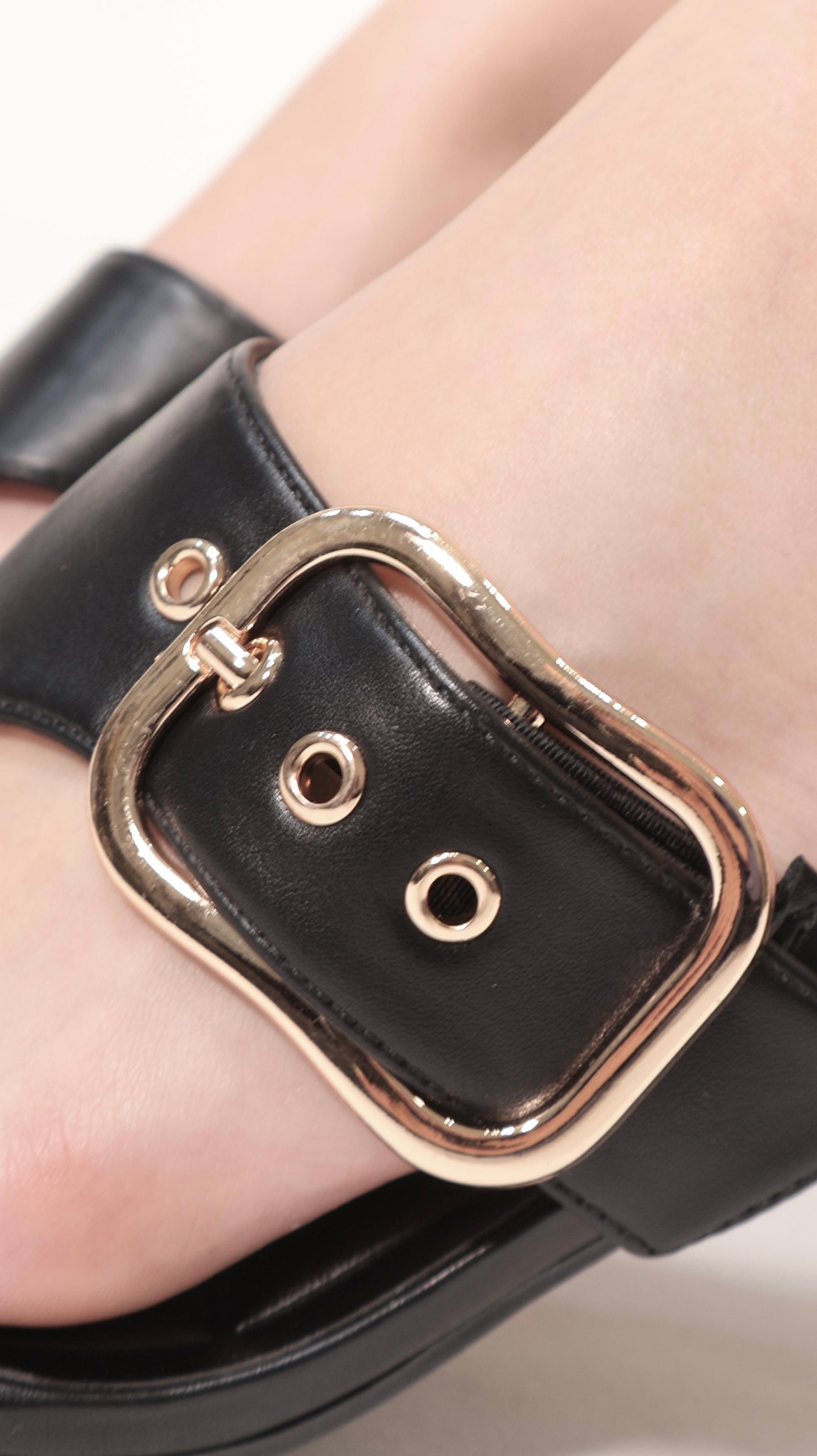 TACÓN CON STRAP GRUESO Y HORCAPOLLO, DETALLE DE HEBILLA DORADA, EXACTO A LA TALLA