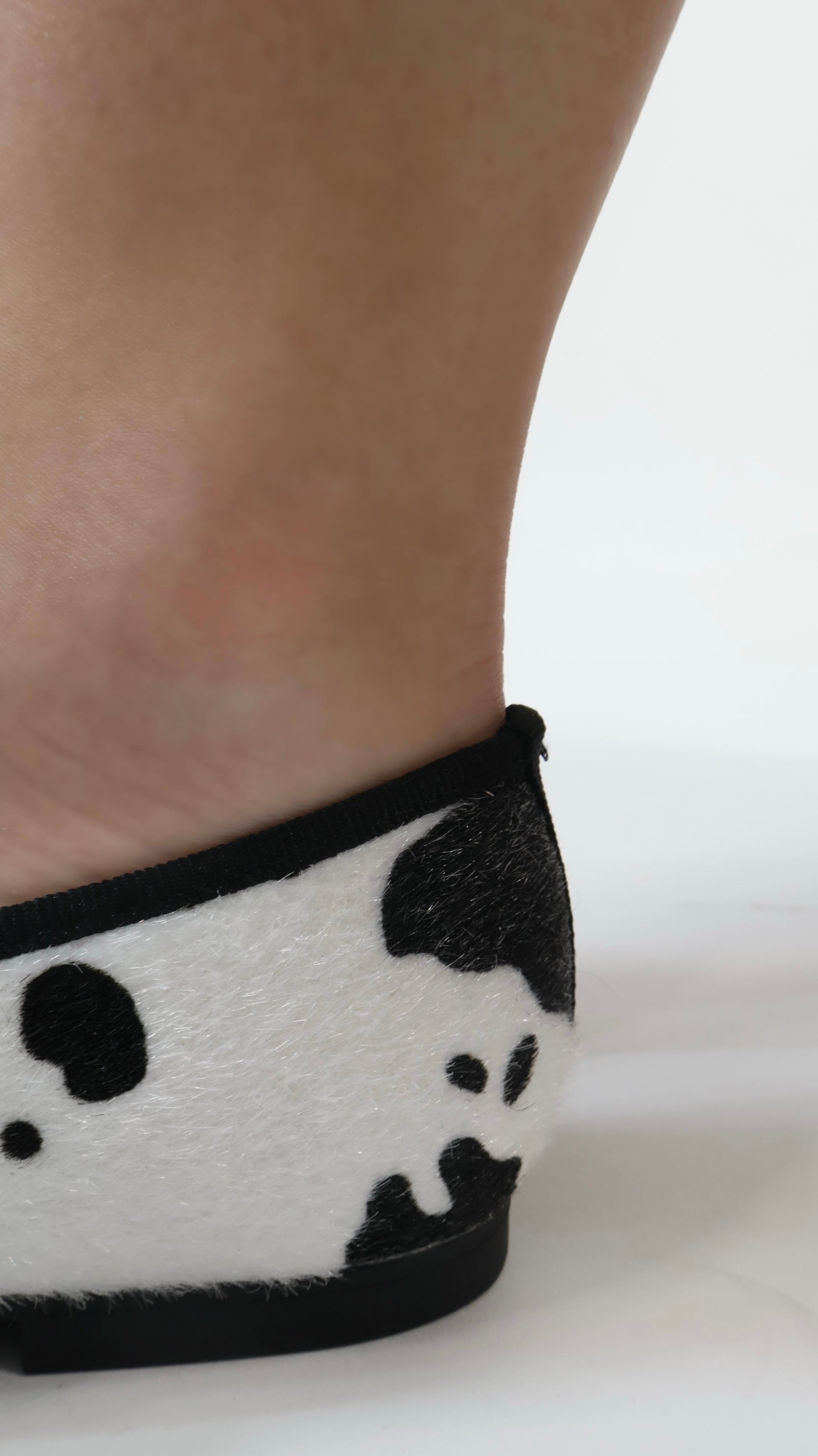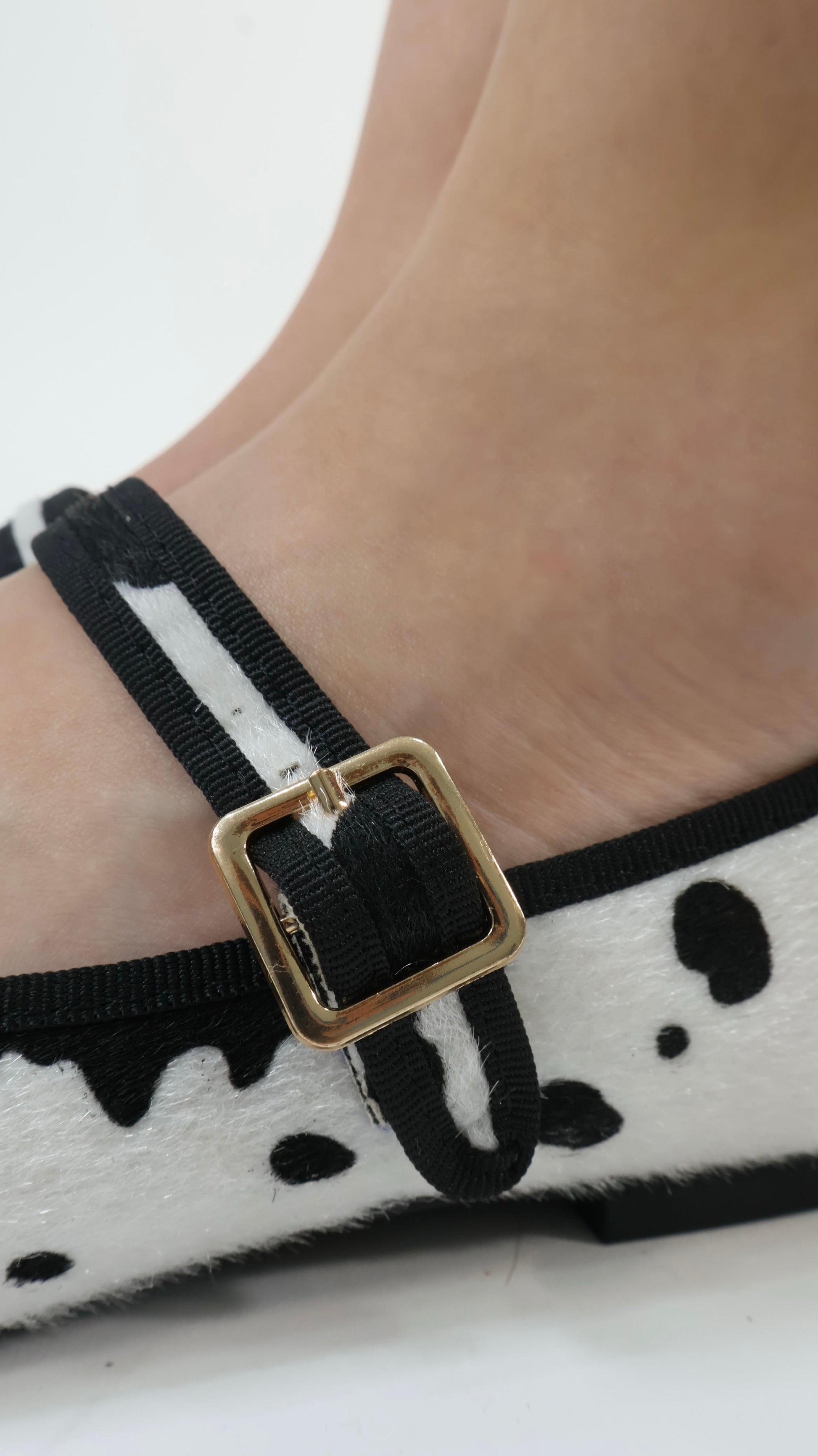ZAPATOS DE PISO PICUDOS CON STRAP AL EMPEINE, ESTAMPADO DE VACA Y TIENE TEXTURA DE PELITO, EXACTO A SU TALLA