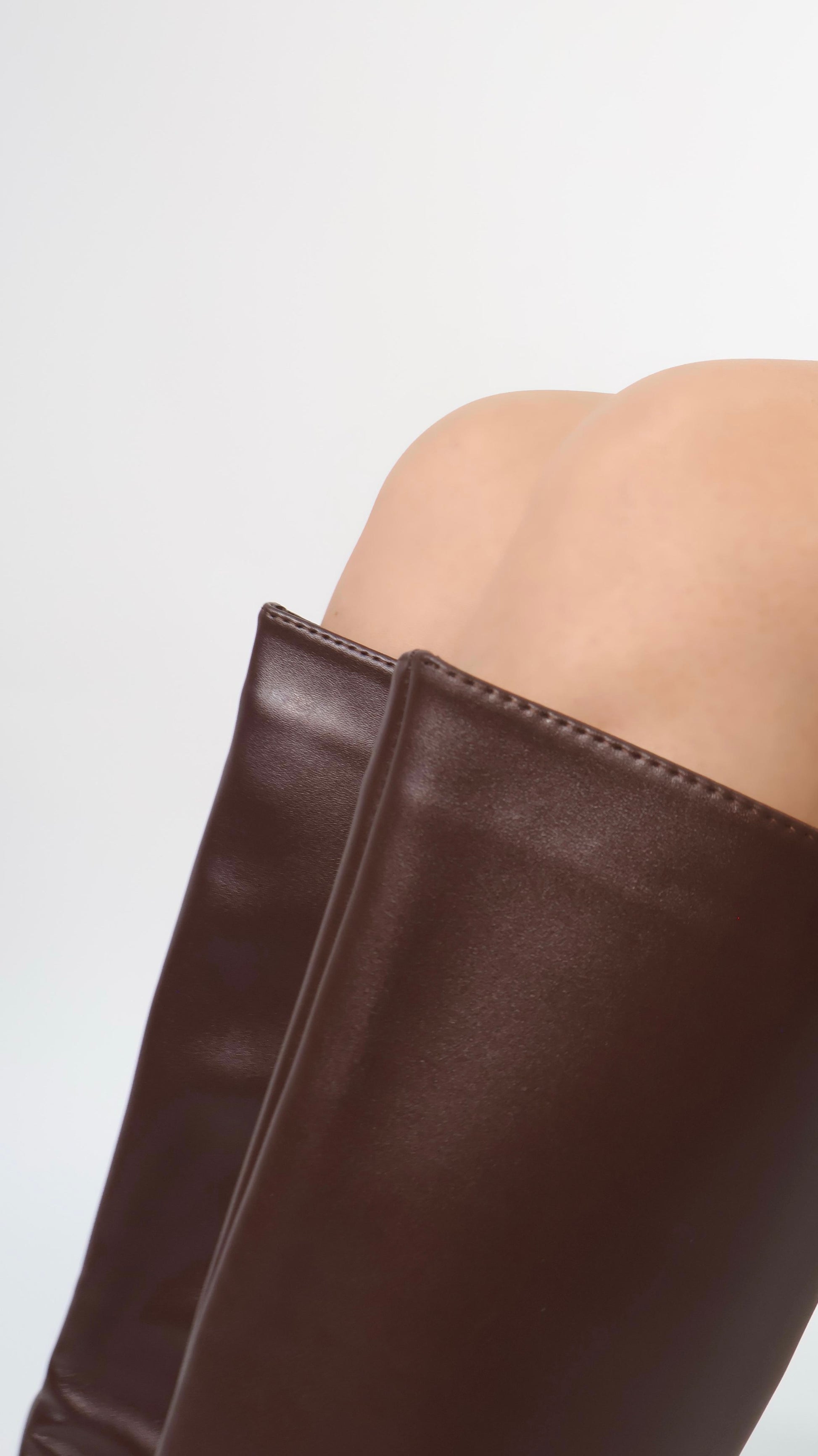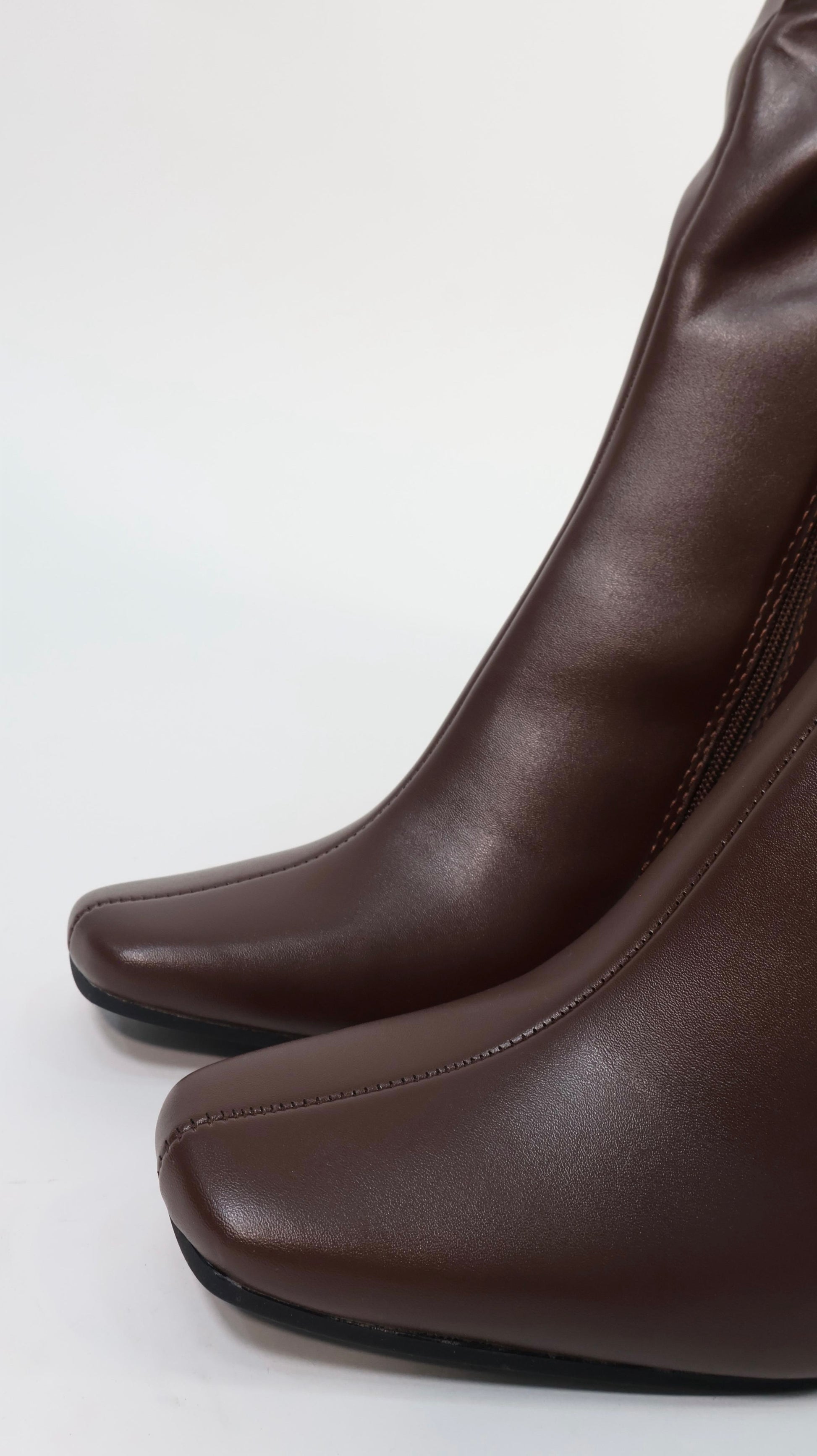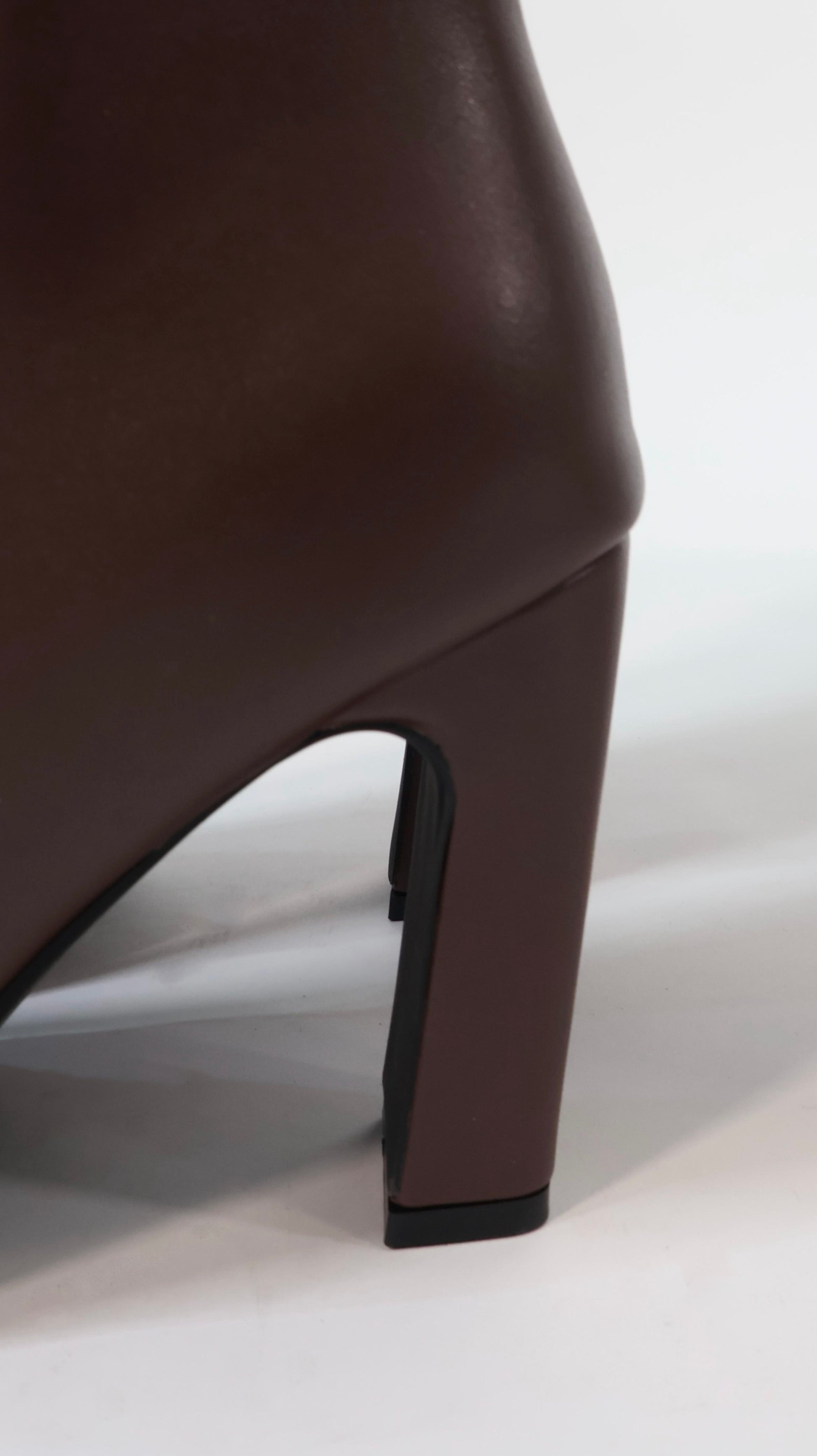 BOTA BASICA EN MATERIAL NUBUCK COLOR CAFE, PUNTA CON REDUCCION A CUADRO, TACON GRUESO DE 9CM DE ALTO APROXIMADAMENTE, CIERRE POR LA PARTE INTERNA, EXACTO A LA TALLA