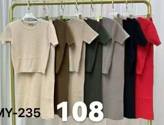 CONJUNTO DE TELA DE PUNTO CON FALDA LARGA Y BLUSA DE MANGA CORTA, UNITALLA ABARCA PARA CHICA, MEDIANA Y GRANDE