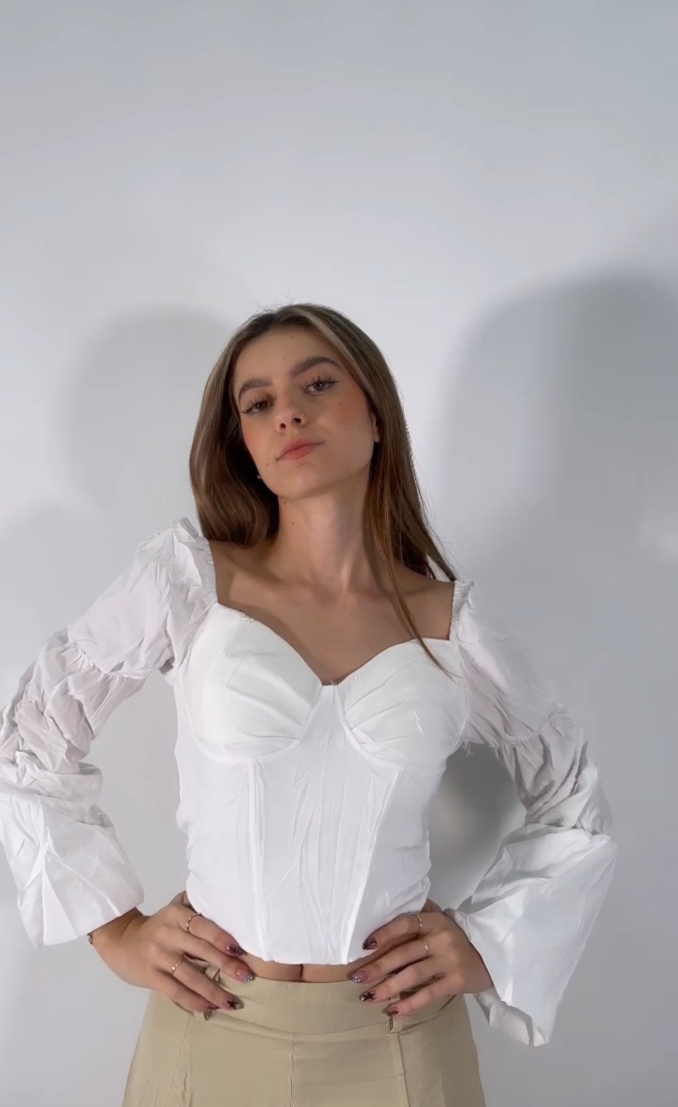 BLUSA DE MANGA LARGA, CON RESORTES EN LAS MANGAS, CINTURA DE CORSET, RESORTE EN LA PARTE TRASERA