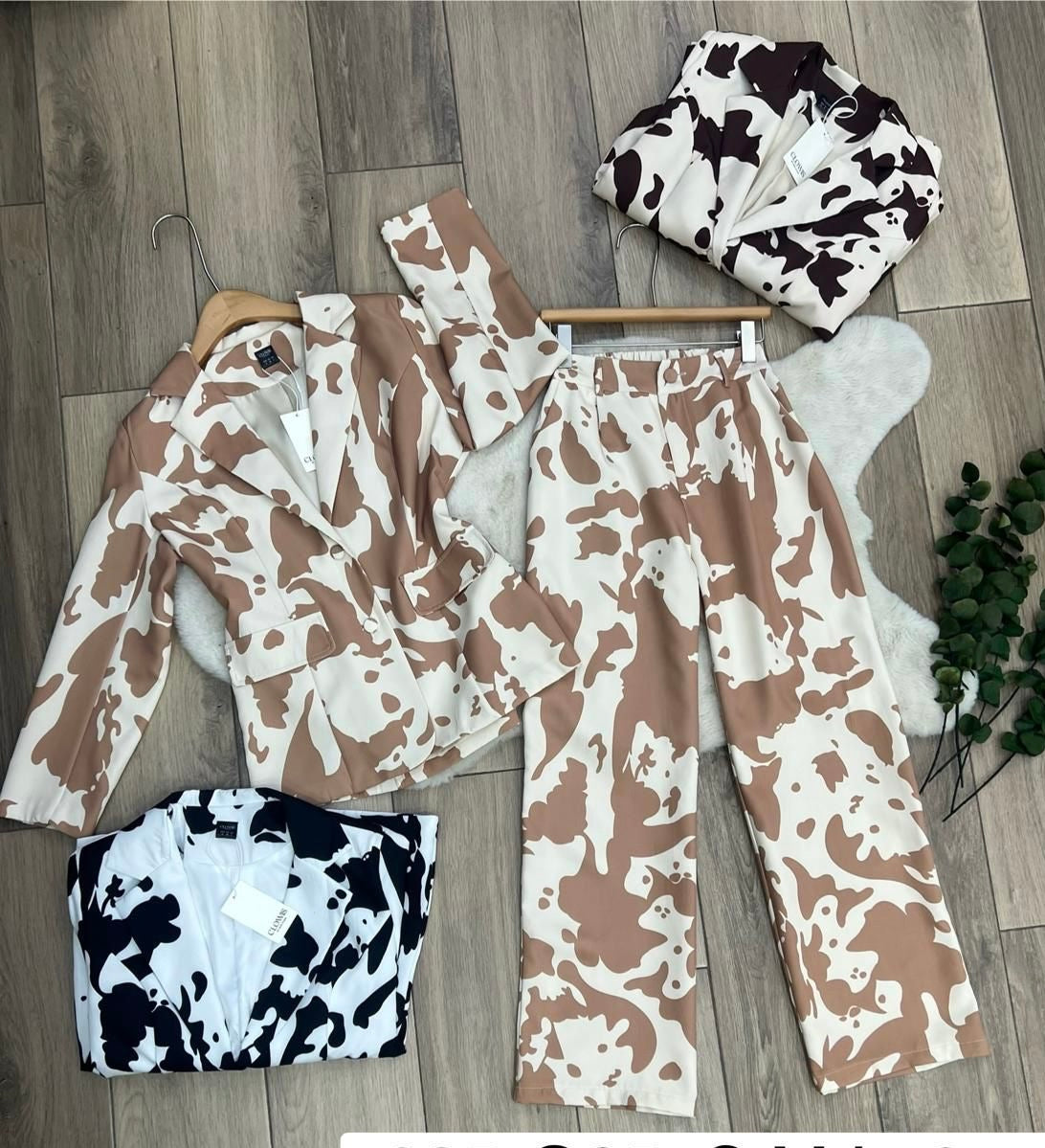 CONJUNTO DE SACO CON PANTALON, CON ESTAMPADO DE VACA,