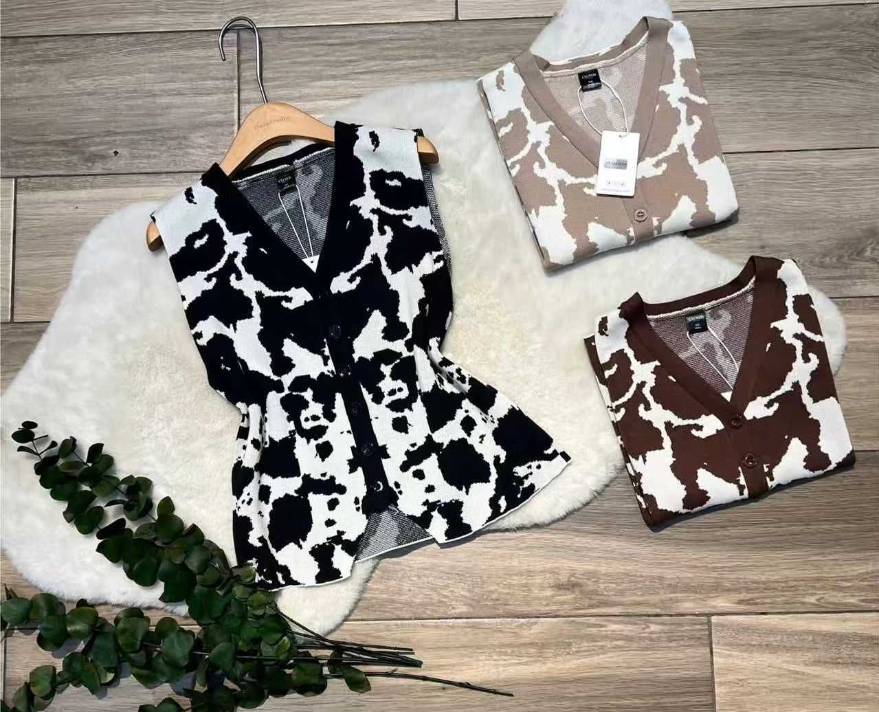 CHALECO DE TELA DE PUNTO, CON ESTAMPADO DE VACA,