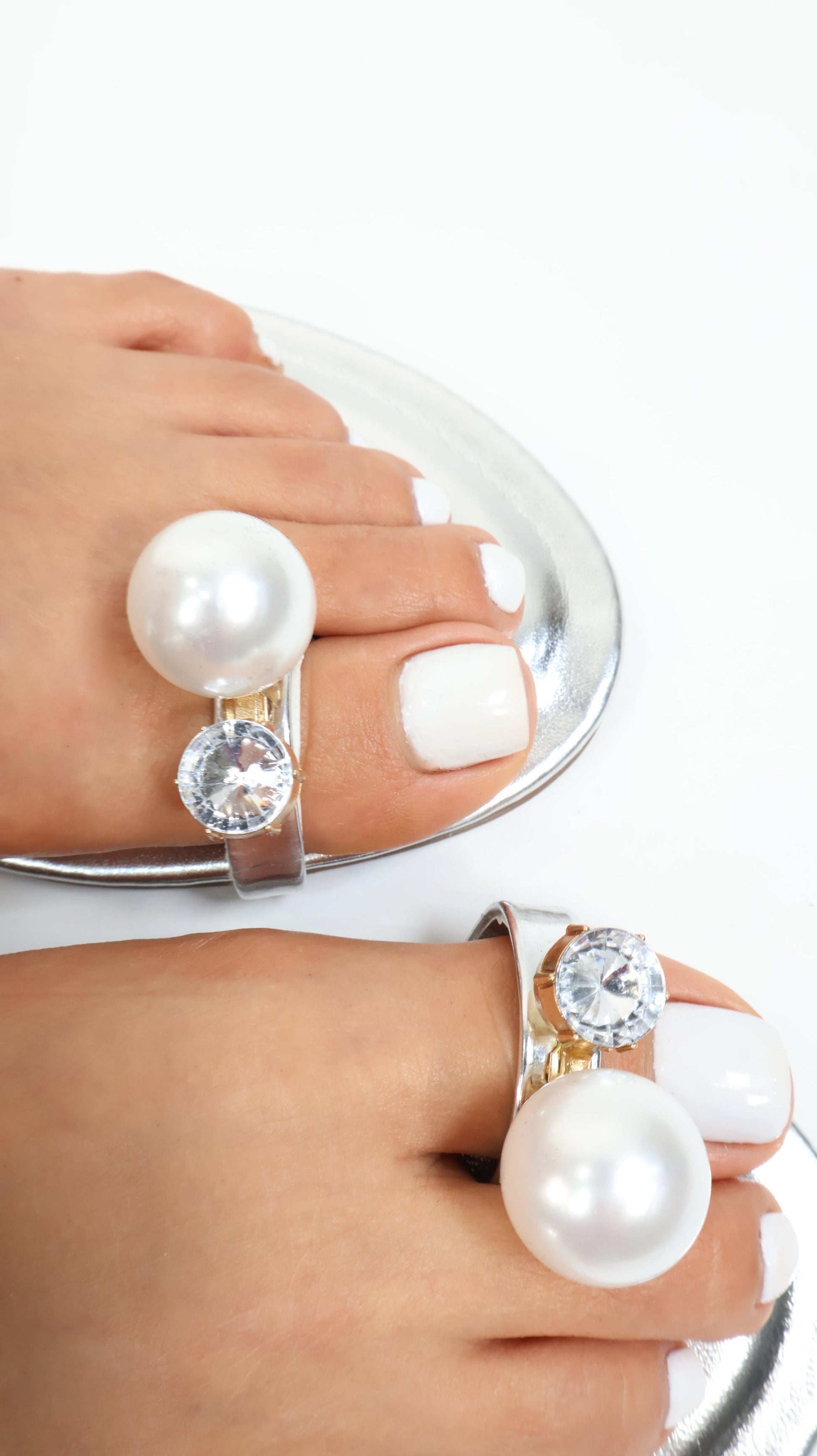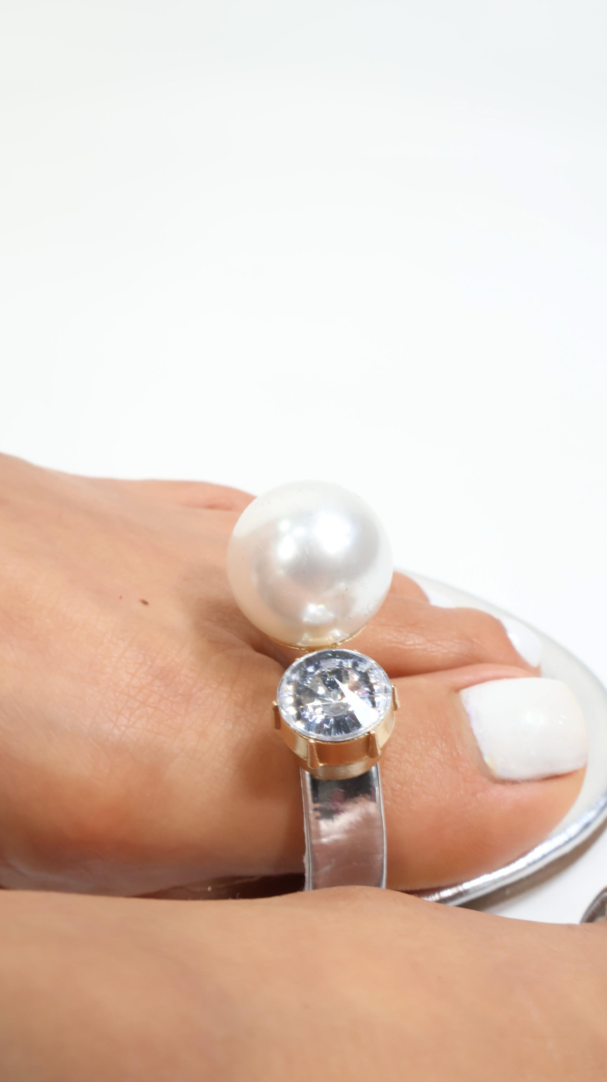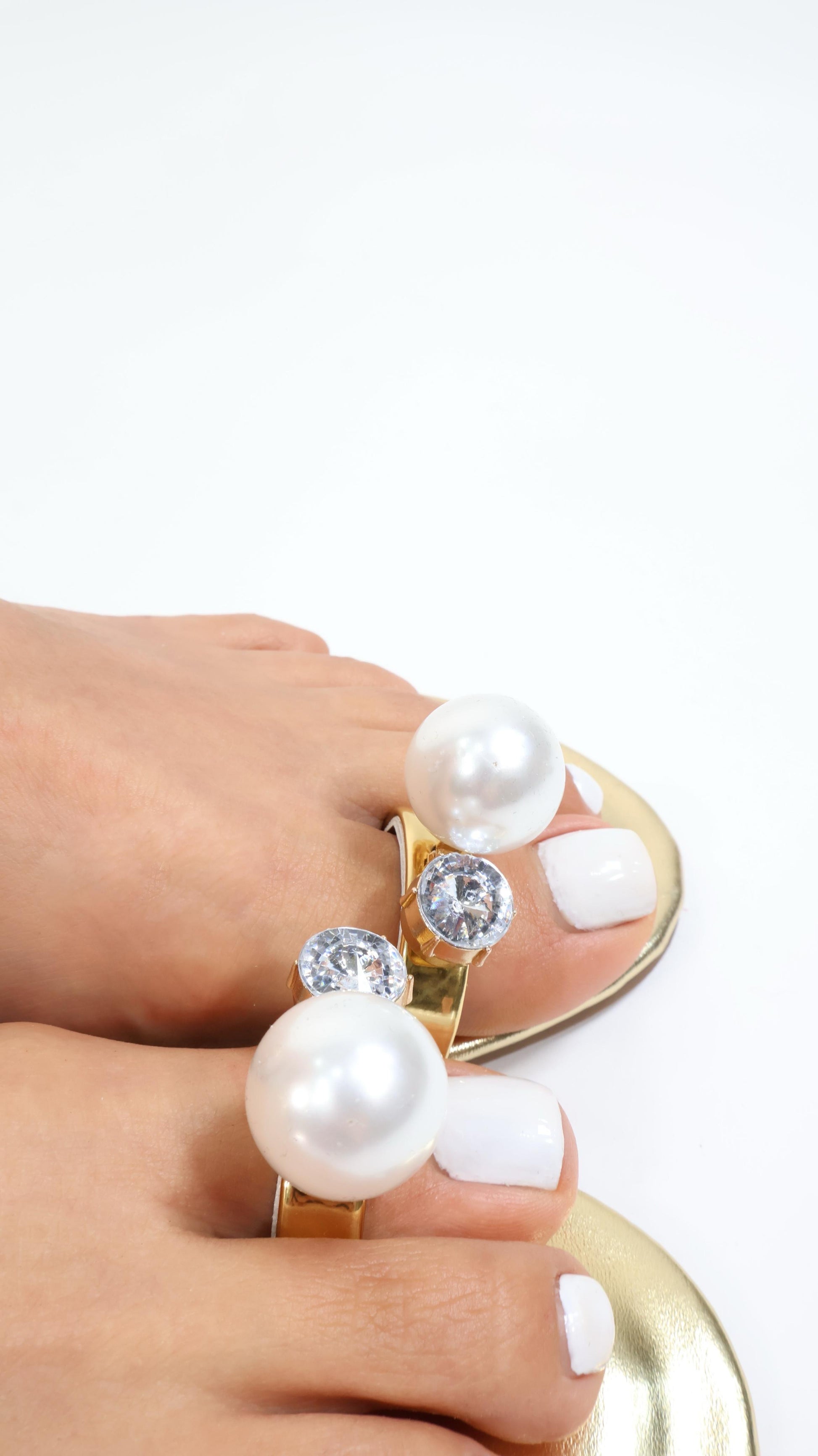 SANDALIA CON TIRA DELGADA AL EMPEINE Y ANILLO TIPO HORCAPOLLO PARA EL DEDO GORDO, MAXI PERLA Y PIERDA SOBRE ESTE, EXACTO A LA TALLA